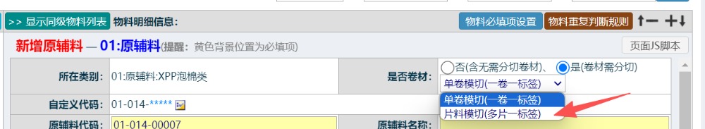 点晴模切ERP材料是片料如何做资料?