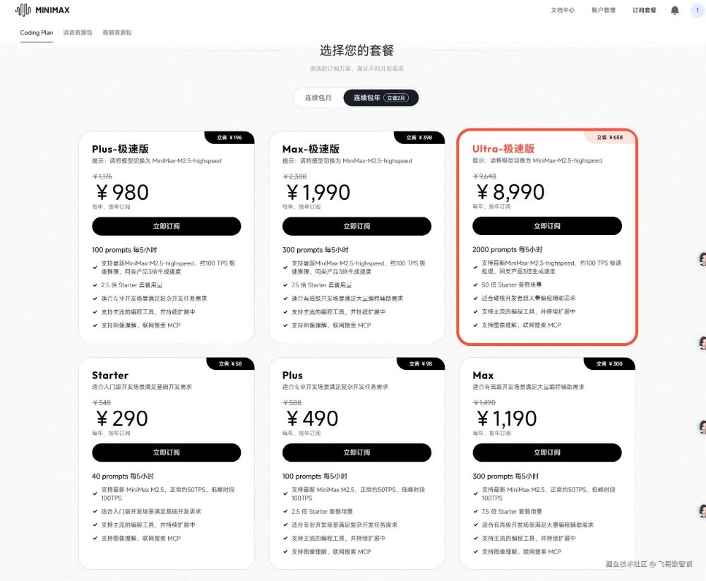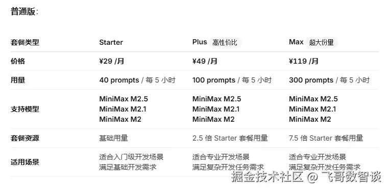 MiniMax一位老大哥推荐,再加上前一阵开发网页审美、稳定性都挺在线,所以这次过期的套餐就是这个。 最关键的点,这个应该是入门最便宜的选择。 特点
