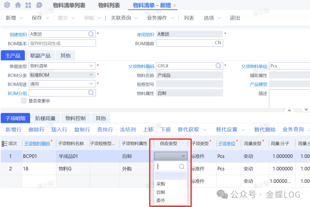 Q问题描述在物料清单(BOM)的维护中,有一个字段作用很大但容易被忽视,它就是【供应类型】。本文将为您厘清其核心逻辑与业务影响。学完本篇文章,您将学会:①【供应类型】字段的作用。②【供应类型】字段的主要用途。③【供应类型】字段对外购属性物料的限制。