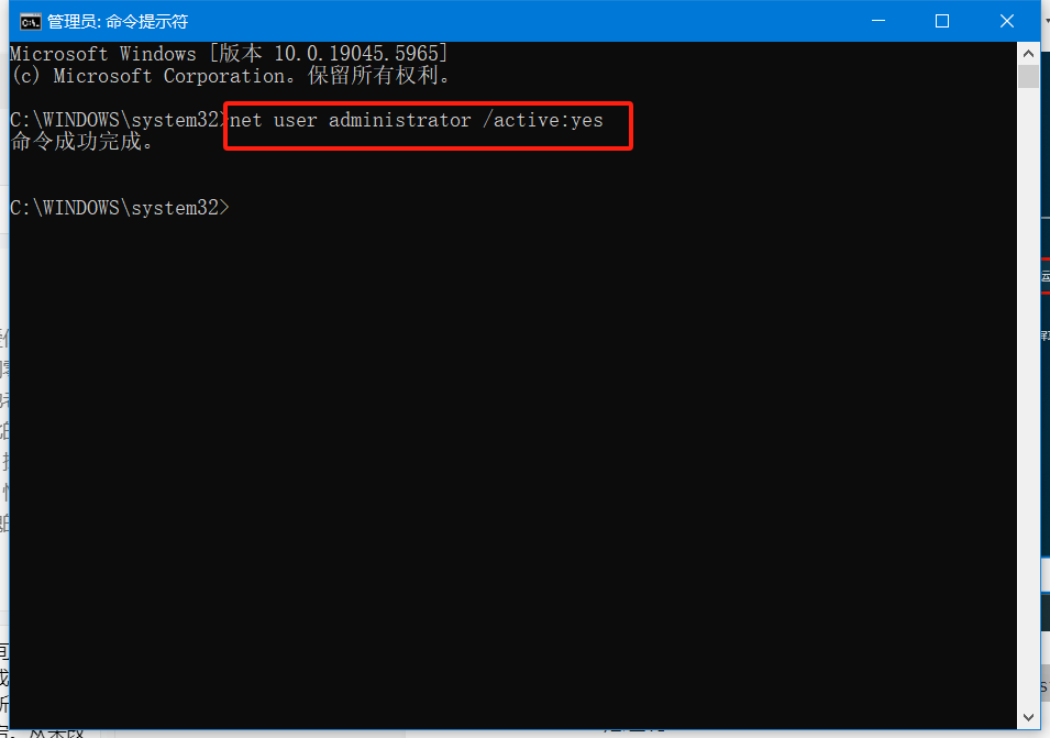 当你完成特定的系统任务后,想关闭Administrator管理员账户,那么重复以上2个步骤,在命令窗口输入:net user administrator /active:no,再按Enter键运行,那么就成功关闭管理员账户。
