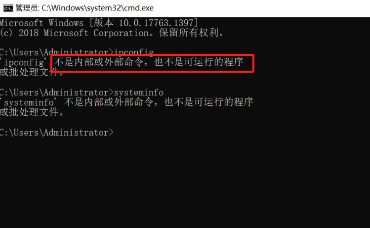 通过CMD打开系统命令窗口后,如果输入命令无法执行,比如提示 “命令无法识别”。这时,要仔细检查命令输入是否正确,是否存在拼写错误 。另外,还要确保CMD是以管理员身份运行的,如果不是,很多命令将无法正常执行 。 如果确认命令输入无误且已经以管理员身份运行CMD,但命令窗口还是提示“不是内部或外部命令,也不是可运行的程序”: