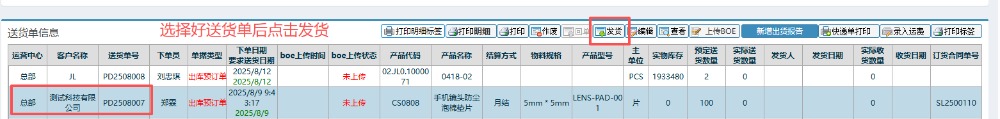 点晴模切ERP-BOE成品送货单流程