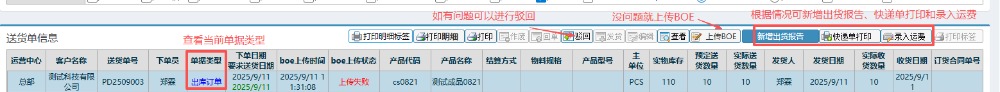 8.发货和回单之后,确认当前单据类型为出库订单,然后点击上传BOE