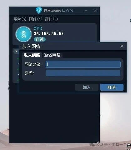 点击“加入网络”: 在 Radmin LAN (Radmin VPN) 主界面中,找到并点击“加入网络”按钮。