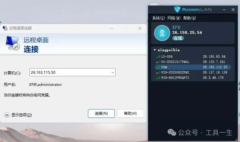 输入远程计算机的 IP 地址: 在 Radmin VPN 网络中,每台计算机都会获得一个虚拟 IP 地址。你可以从 Radmin LAN (Radmin VPN) 界面中查看到远程计算机的 IP 地址。
