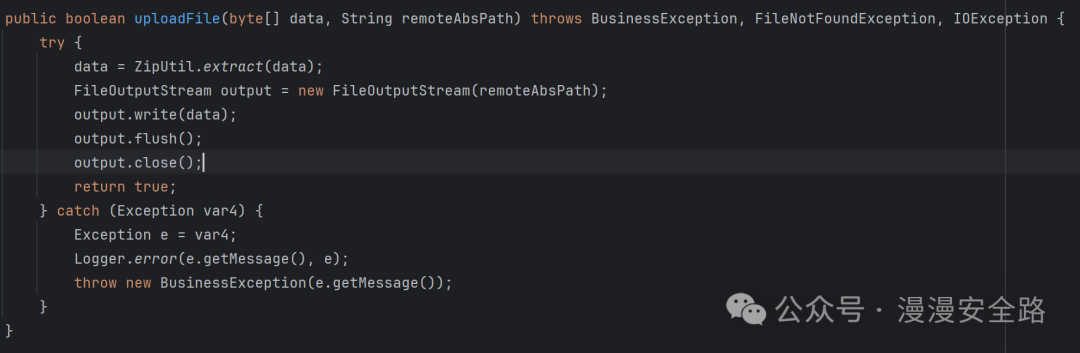 我这个代码是修复了这个漏洞以后的加了包名限制。这里其实和我们上面反射调用方法是一样的只不过这里是json格式上面是反序列化。所以我们看下"method":"uploadFile","className":"nc.itf.hr.tools.IFileTrans"修复了没还是只加了包名限制反射调用。