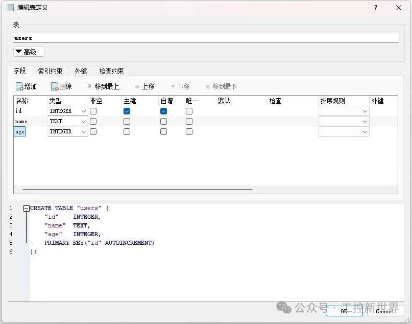 001 了解一下 SQLite 数据库 SQLite 是一个轻量级的嵌入式关系型数据库,它非常适合嵌入式应用和小型项目。 零配置:与传统的数据库系统(如 MySQL、PostgreSQL)不同,SQLite 不需要安装和配置任何数据库服务器,而是将整个数据库存储在一个单一的文件中,直接通过文件来存储和读取数据。 .db 或 .sqlite 文件中。SQLite 是一个以文件为基础的数据库引擎。每个数据库都是一个普通的磁盘文件,所有的数据和结构都存储在这个文件中。![]() .db:这只是 SQLite 数据库文件的常见扩展名。很多时候,这个扩展名是为了让文件看起来像一个通用的数据库文件,或者是根据开发人员的习惯命名。 .sqlite:这是 SQLite 数据库的另一种常见扩展名,通常用于强调该文件是一个 SQLite 数据库。也可以用 自包含:SQLite 是一个纯 C 实现的数据库引擎,所有的功能都可以在一个独立的文件中运行,因此非常适合嵌入式系统。 B-tree 存储:SQLite 使用 B-tree 结构来存储数据,使得数据库查询高效。B-tree 是一种自平衡的数据结构,适用于高效查找、插入和删除。 支持 SQL 语法:SQLite 支持标准的 SQL 语法,包括查询、插入、删除、更新等常用操作。 SQL 支持:SQLite 完全支持 SQL 标准,包含了大部分常用的 SQL 功能(如 JOIN、子查询、事务等)。