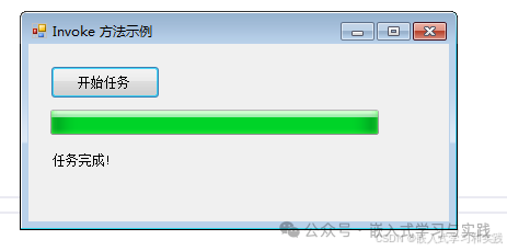// 调用Invoke,传递进度参数并接收返回值                // 定义带参数和返回值的委托(输入进度值,返回状态字符串)                Func<intstring> updateFunc = (i) =>                {                    // UI操作:更新进度条                    progressBar.Value = i;                    // 生成状态描述                    string status = $"进度:{i}%({DateTime.Now:ss}秒)";                    return status; // 返回状态给后台线程                };                // 调用Invoke,传递进度参数并接收返回值                string currentStatus2 = (string)progressBar.Invoke(updateFunc, progress);                // 后台线程使用UI返回的结果(如日志输出)                Console.WriteLine($"progressBar 后台日志2:{currentStatus2}");                return;            }            progressBar.Value = progress;        }        private void statusLabel_log(string message)        {            if (statusLabel.InvokeRequired)            {                //调用Invoke,传递参数                //statusLabel.Invoke(new Action<string>(statusLabel_log), message);                // 调用Invoke,传递进度参数并接收返回值                // 定义带参数和返回值的委托(输入进度值,返回状态字符串)                Func<stringstring> updateFunc = (info) =>                {                    // UI操作:更新进度条                    statusLabel.Text = info;                    // 生成状态描述                    string status = $"进度:{info}%({DateTime.Now:ss}秒)";                    return status; // 返回状态给后台线程                };                // 调用Invoke,传递进度参数并接收返回值                string currentStatus2 = (string)progressBar.Invoke(updateFunc, message);                // 后台线程使用UI返回的结果(如日志输出)                Console.WriteLine($"statusLabel 后台日志2:{currentStatus2}");                return;            }            statusLabel.Text = message;        }        // 使用 BeginInvoke 异步启用按钮        private void EnableButton()        {            if (startButton.InvokeRequired)            {                // 使用 BeginInvoke 异步执行                startButton.BeginInvoke(new Action(EnableButton));            }            else            {                startButton.Enabled = true;            }        }        // 窗体关闭时确保工作线程终止        protected override void OnFormClosing(FormClosingEventArgs e)        {            base.OnFormClosing(e);            // 如果工作线程还在运行,尝试终止它            if (workerThread != null && workerThread.IsAlive)            {                workerThread.Abort(); // 注意:Abort 可能引发异常,实际应用中应使用更优雅的方式            }        }    }}