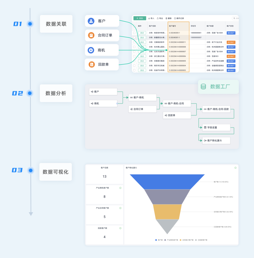 如果你不看漏斗,所有客户都堆成一团,你根本分不清问题出在哪个环节。
