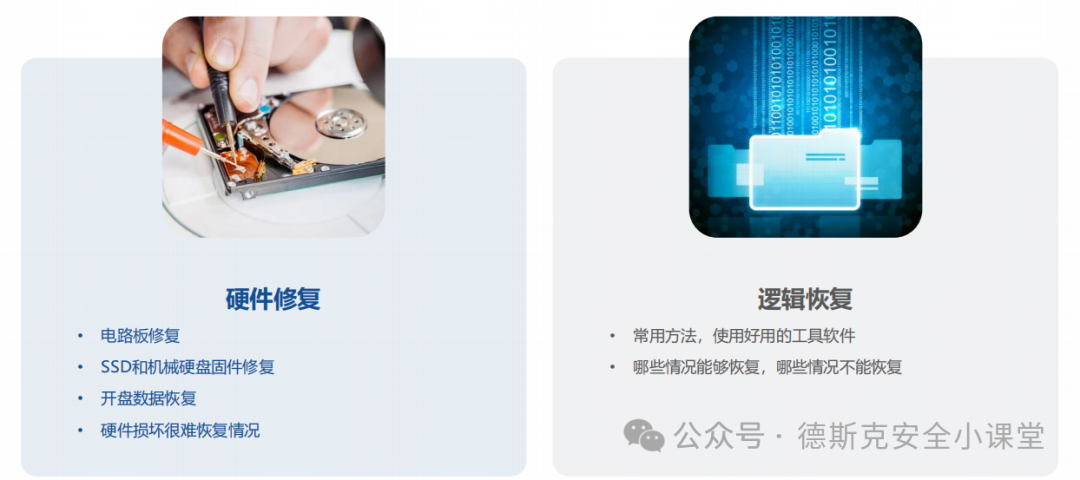 除了逻辑错误(误删、格式化),硬件故障和 RAID 崩溃更棘手,需要针对性处理。
