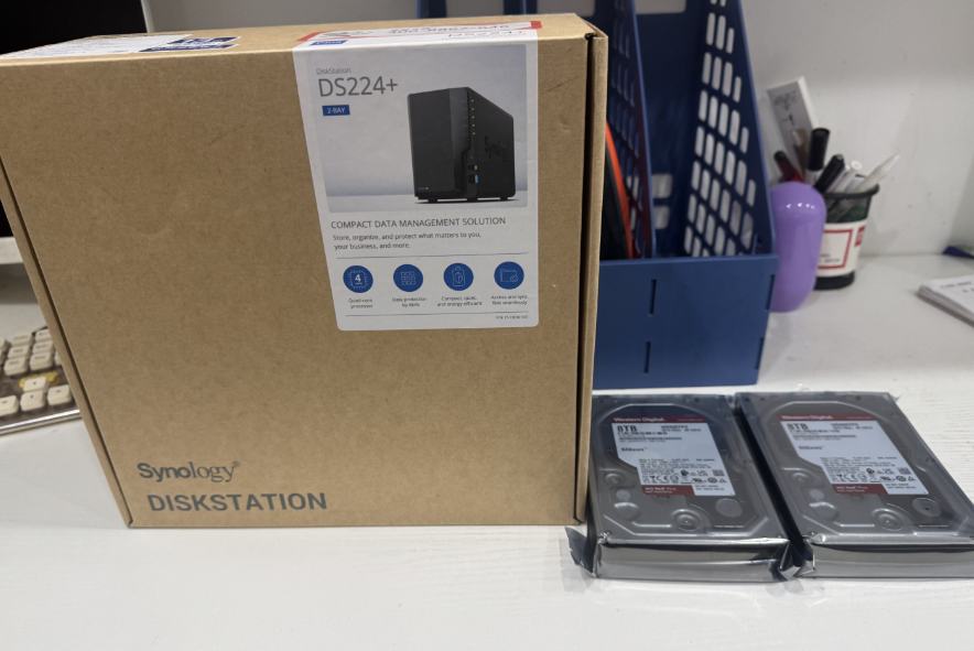硬盘和NAS设备都正常安装完成之后,下面我们就需要为这个NAS设备安装,群辉的操作系统。 那这个设备如何安装操作系统呢? 这时我们需要找一台电脑,和NAS设备连接在同一个局域网,然后打开官方网站。选择NAS产品,型号选择DS224+。