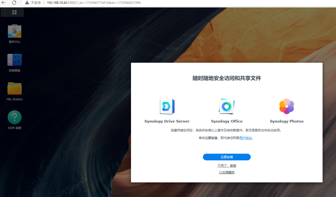 当我们点击系统未安装, 这时就会跳转到网页,通过网页来完成,NAS设备的操作系统的联网安装,这时要保证NAS设备是可以正常上网。 这时我们直接点击安装。